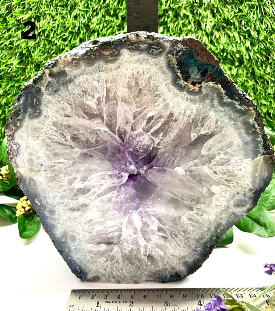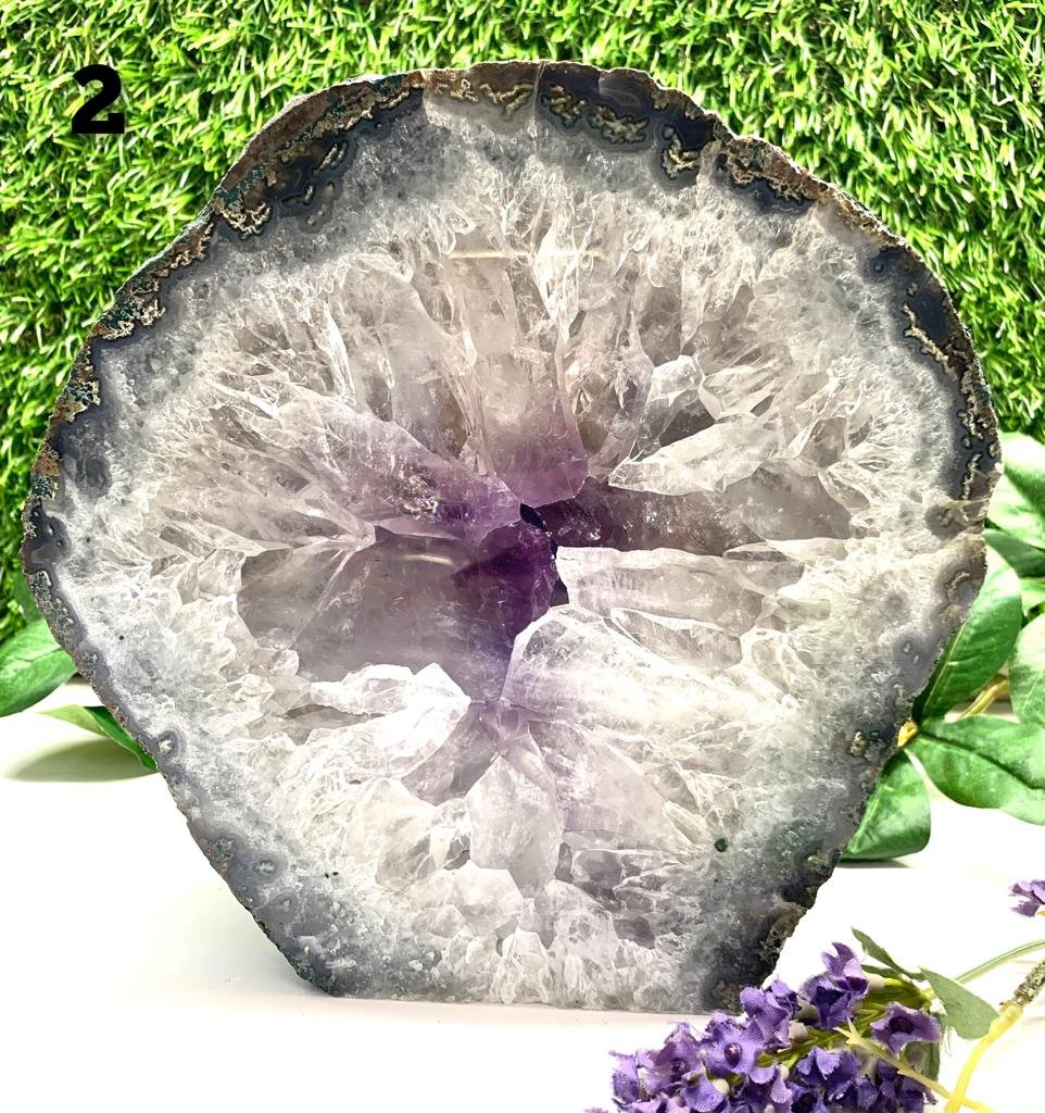 A portal can be used in many ways. Those who meditate can place these around to reach a deeper state of meditation. Portals can connect one to a higher source or other realms to receive messages. Their vibration works on the upper chakras and helps one to develop psychic powers and gifts. Portals are energy vortices and can be used for energy healing by intention. They can be found naturally or sometimes made out of slicing geodes. The height of these portals can be aligned with the crown chakra or the third eye chakra.