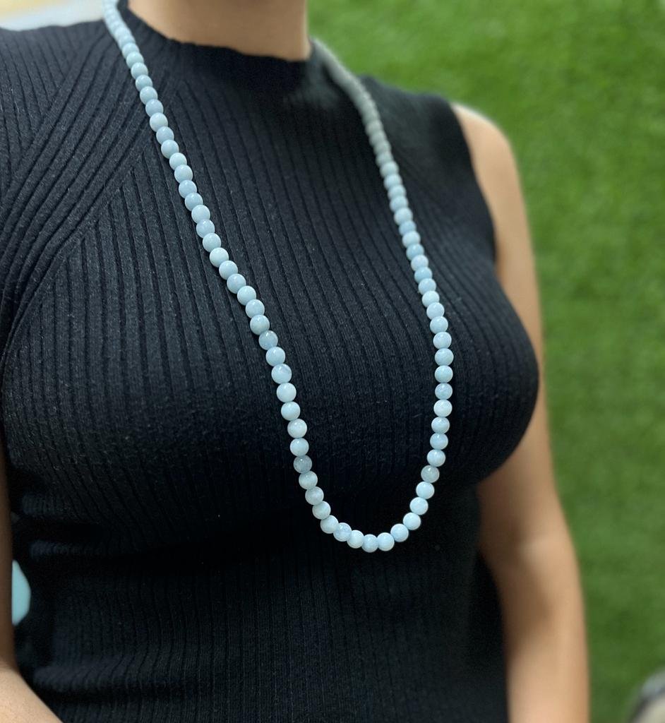 A calming, soothing crystal, aquamarine inspires trust and letting go. It is known to reveal deep hidden meanings if meditating with it and is a stone for healers, Mystics, and shamans. It works well for sensitive people. It enhances clairvoyance and intuition. It helps balance and clear past emotional abuse and excessive anger. It is a throat chakra stone and is great for healing sore throats, thyroid problems, and allergies. It is supposed to be a talisman for sailors and seamen in ancient times. Aquamarine calms frayed nerves. It enhances clairvoyance and psychic abilities. It is known to have anti-aging properties.
