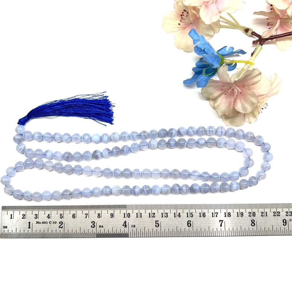 Be the first to review “Blue Lace Agate Round Beads Jaap Mala (Communicaation)”