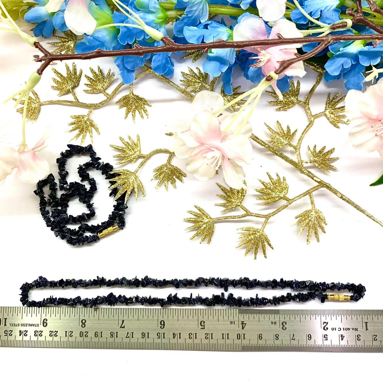 Blue Sandstone Uncut Beads/Chips Necklace.