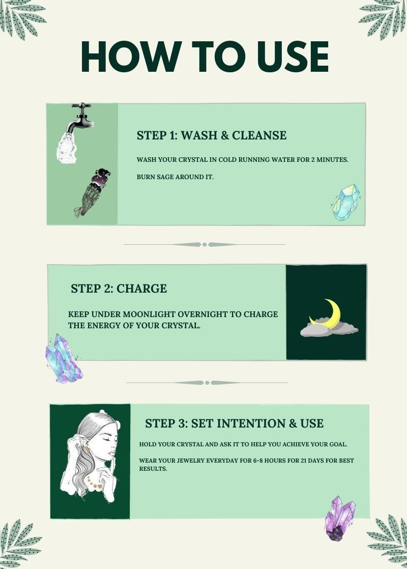 - Remember to keep cleansing and charging your crystals every two to four weeks.