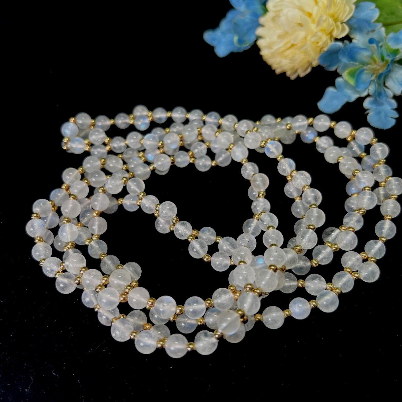 The length of this mala is approximately 54 cm. Moonstone is a symbol of fertility and is associated with the inner goddess and the divine feminine. It enhances intuition and reminds us to go with the flow in life. It helps to get in touch with our inner feelings. It is good for healing hormonal changes in women. It is one of the best stones for emotional balance. It helps ease aggressive tendencies. It is also known to work well for people suffering from insomnia.