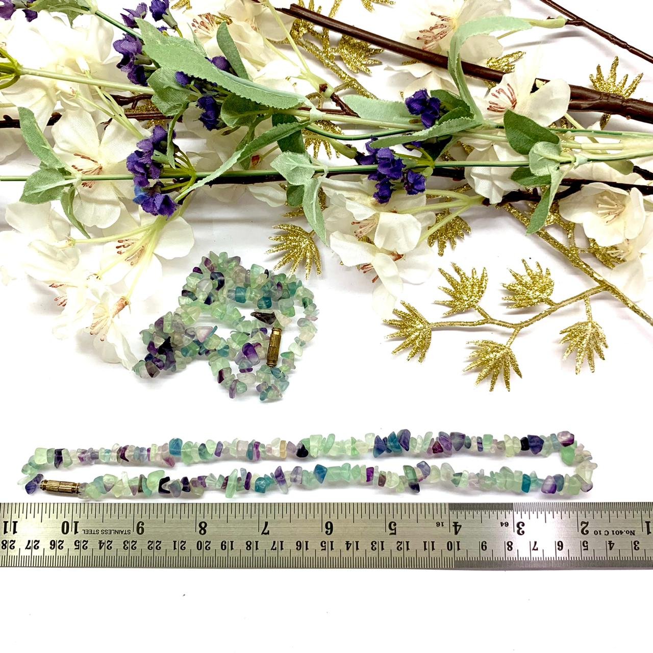 Multi Fluorite Uncut Beads/Chips Necklace.