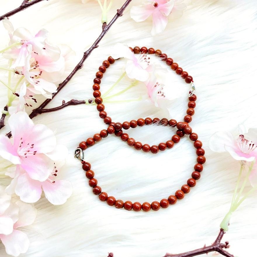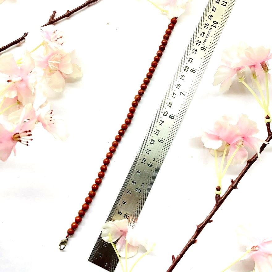 The bead size for the anklets are 6 to 6.5mm Red Jasper is known as the stone of endurance. It is a gentle, but vital, stimulator of chi, or Life Force, bringing physical strength and energy, stamina, focus and determination. Its steady frequency calms the emotional body creating a lasting, stable energy. It stimulates passion in one’s creative work, manifesting new ideas and freshness, and the energy to continue a project. Red Jasper is a stone of empowerment, bringing strength to resist emotional domination by others.