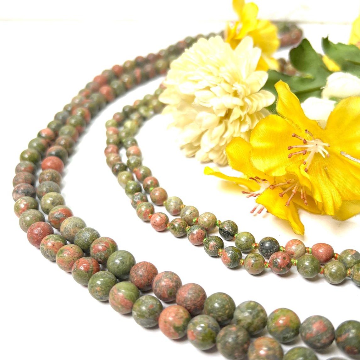 Unakite Round Bead Mala/Necklace