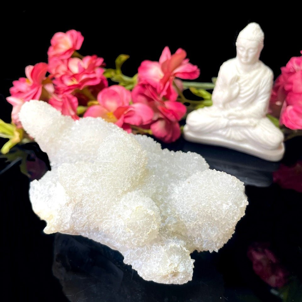 White Chalcedony Druzy Clusters (Calming & Nurturing) is a natural zeolites known for its healing and spiritual benefits. It is widely used to balance energy, remove negativity, and attract positivity. This zeolites aligns with specific chakras, enhances mental clarity, and provides emotional stability. Perfect for meditation, protection, and overall well-being.
